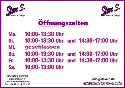 (natürlich leite ich ihr auch Mails und Anfragen in der nächsten Zeit von info@steve-s.de noch weiter :) )