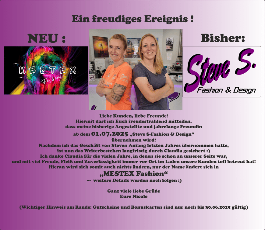 ACHTUNG !!! Letzter Tag für Online-Bestellungen über steve-s.de ist der 15.06.2025 !!!